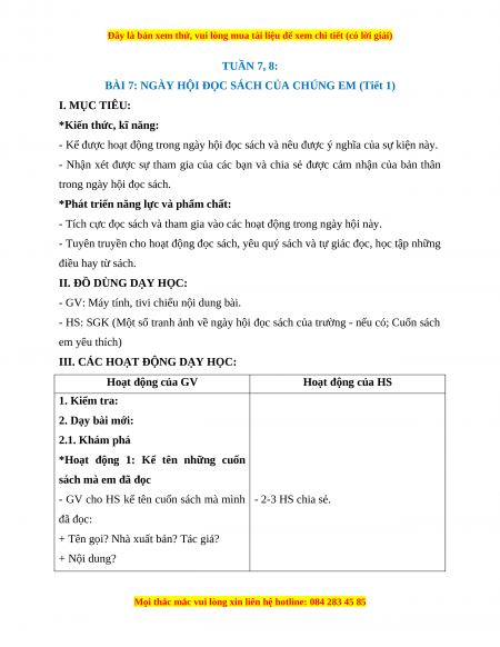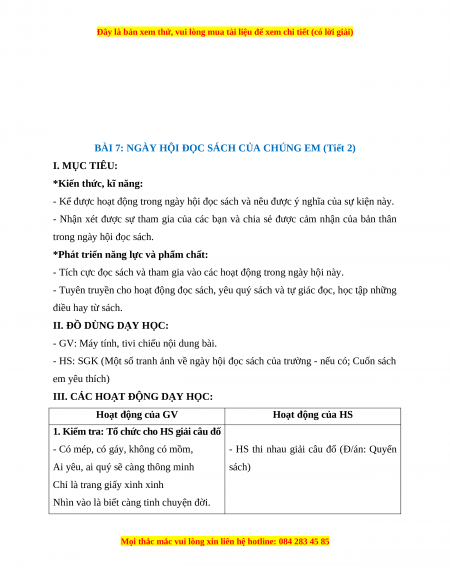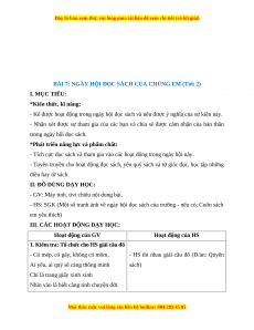 BÀI 7: NGÀY HỘI ĐỌC SÁCH CỦA CHÚNG EM (Tiết 1) I. MỤC TIÊU: