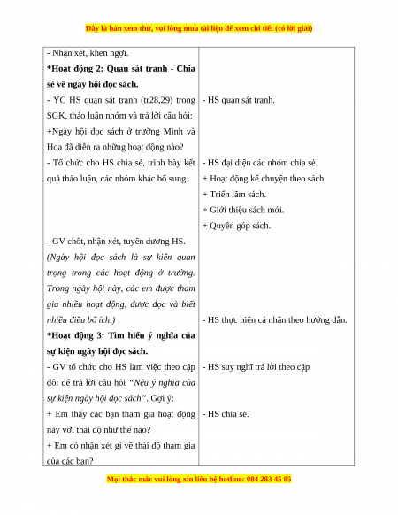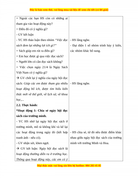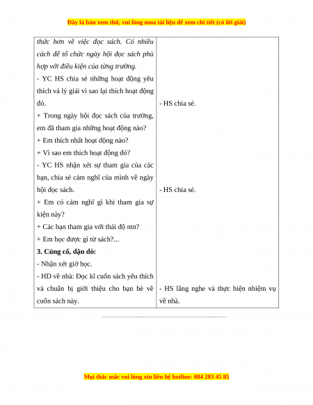 - Kể được hoạt động trong ngày hội đọc sách và nêu được ý nghĩa của sự kiện này.