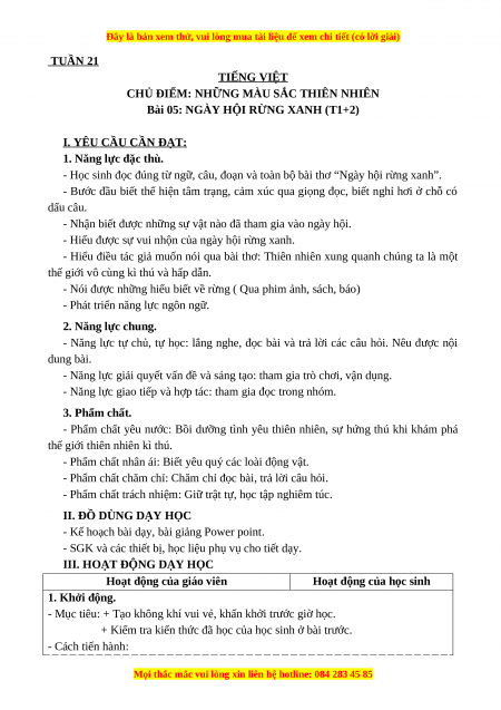 Bài 05: NGÀY HỘI RỪNG XANH (T1+2) I. YÊU CẦU CẦN ĐẠT: 1. Năng lực đặc thù.