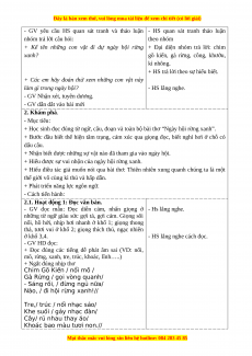 - Phẩm chất yêu nước: Bồi dưỡng tình yêu thiên nhiên, sự hứng thú khi khám phá
