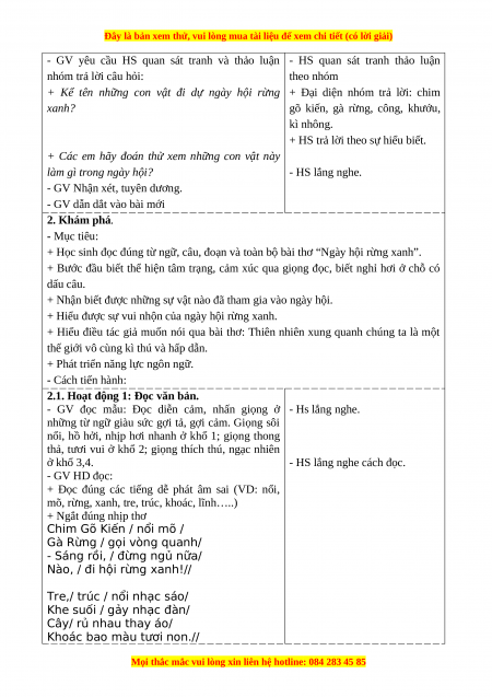 - Học sinh đọc đúng từ ngữ, câu, đoạn và toàn bộ bài thơ “Ngày hội rừng xanh”.