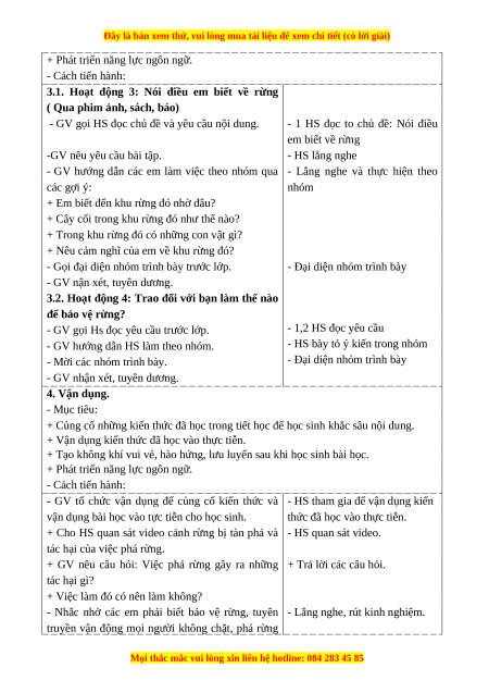 - Nói được những hiểu biết về rừng ( Qua phim ảnh, sách, báo)