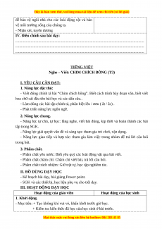 - Viết đúng chính tả bài “Chim chích bông”. Biết cách trình bày đoạn văn, biết viết