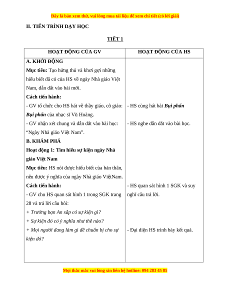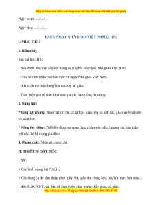 BÀI 7: NGÀY NHÀ GIÁO VIỆT NAM (2 tiết) I. MỤC TIÊU 1. Kiến thức Sau bài học, HS: