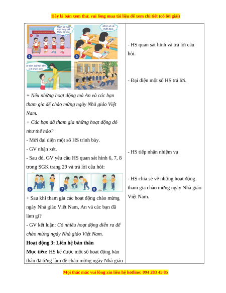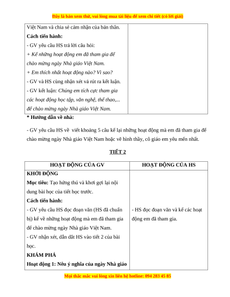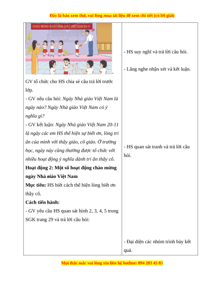 - Nêu được tên, một số hoạt động và ý nghĩa của ngày Nhà giáo Việt Nam.