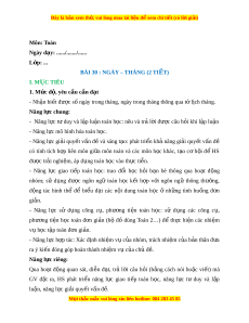 ế được số ngày trong tháng, ngày trong tháng thông qua t l ờ ch t ị háng. Năng l c chung ự : - Năng l c t ự duy và ư l p l ậ u n t ậ oán h c: ọ nêu và tr l ả i ờ đư c ợ câu h i ỏ khi l p ậ lu n ậ - Năng l c m ự ô hình hóa toán h c. ọ - Năng l c ự gi i ả quy t ế v n ấ đ và ề sáng t o: ạ phát tri n ể kh ả năng gi i ả quy t ế v n ấ đề có tính tích h p ợ liên môn gi a