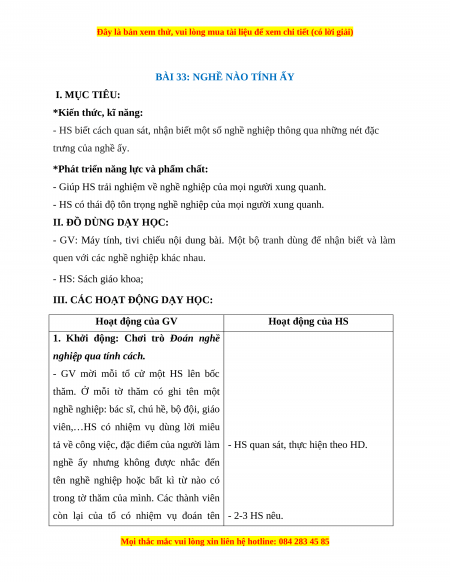 BÀI 33: NGHỀ NÀO TÍNH ẤY I. MỤC TIÊU: