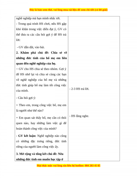 - Giúp HS trải nghiệm về nghề nghiệp của mọi người xung quanh.