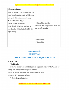 CHIA SẺ VỀ ĐỨC TÍNH NGHỀ NGHIỆP CỦA BỐ MẸ EM I. MỤC TIÊU: * Sơ kết tuần: