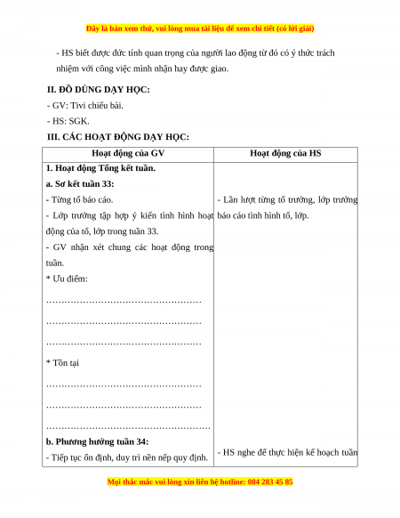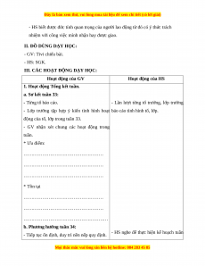 1. Hoạt động Tổng kết tuần. a. Sơ kết tuần 33:
