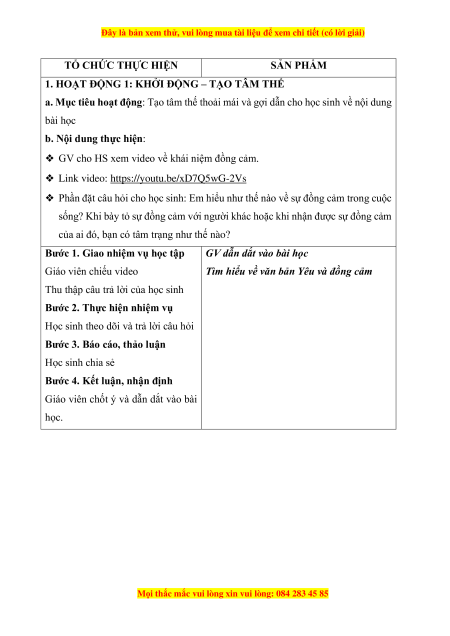 ❖ GV cho HS xem video về khái niệm đồng cảm.