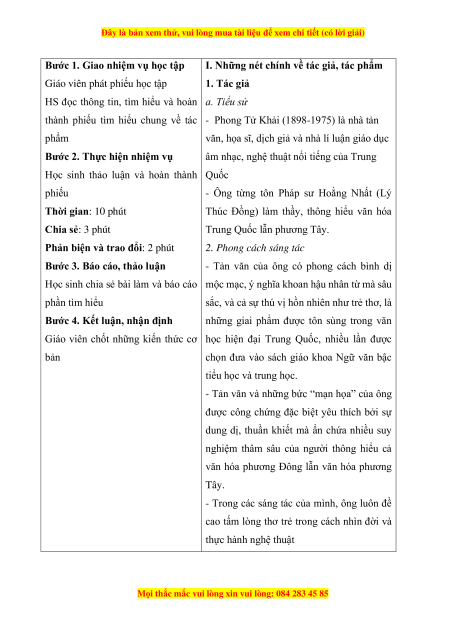❖ Học sinh hoàn thiện phiếu học tập tìm hiểu chung về tác giả tác phẩm