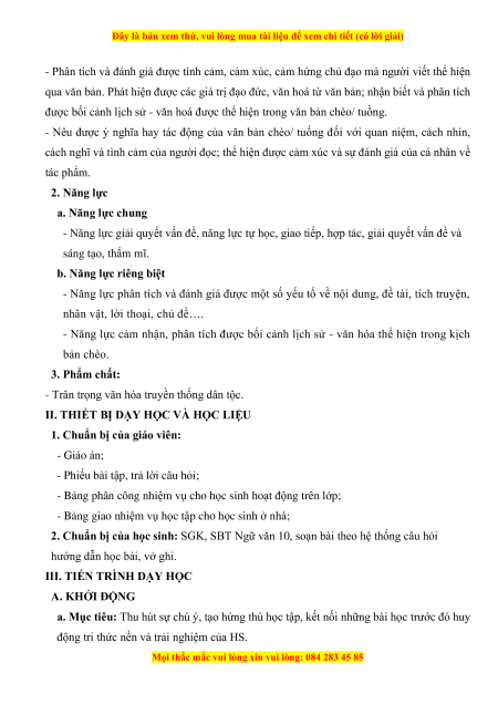 - Năng lực cảm nhận, phân tích được bối cảnh lịch sử - văn hóa thể hiện trong kịch bản chèo. 3. Phẩm chất: