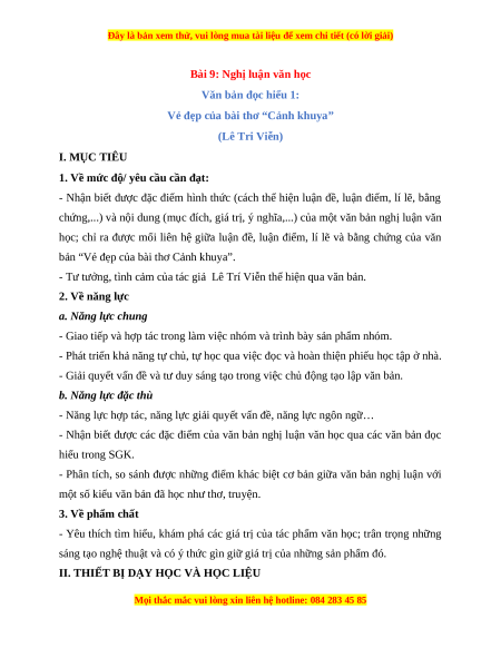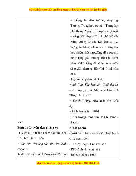 Giáo án Nghị luận văn học (2024) Cánh diều