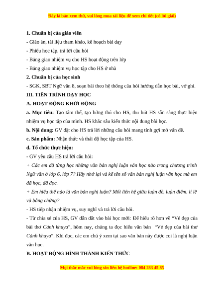 Bộ giáo án Ngữ văn 8 Cánh diều đã cập nhật đủ Cả năm.