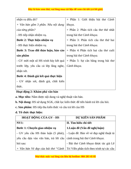 + Văn bản Vẻ đẹp của bài thơ “Cảnh