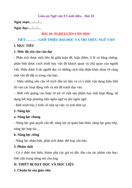 Giáo án Nghị luận văn học (2024) Cánh diều