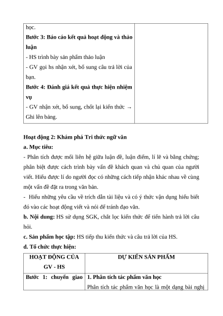 Bước 1: chuyển giao 1. Phân tích tác phẩm văn học