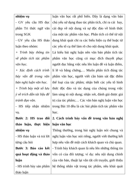 - HS tiếp nhận nhiệm trong Bài 10 đều là các bài phân tích tác phẩm văn vụ. học.