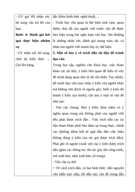 ý về trích dẫn tài liệu để làm sáng tỏ nội dung; nhận xét, đánh giá được giá tránh đạo văn.