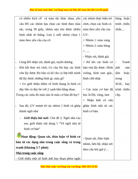 - KHDH, một số tấm bìa màu có hình cơ bản; hình ảnh minh họa ngôi nhà, clip