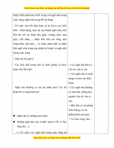 phận đó có dạng hình gì? có mái nhà, tường bao quanh, cửa sổ, cửa ra vào + Mái nhà có cái giống hình thang, có cái giống hình tam giác.