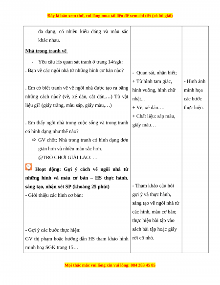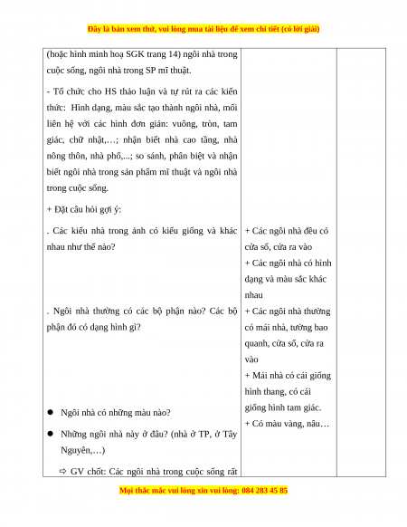 Giáo án Ngôi nhà của em Mĩ thuật 1 Chân trời sáng tạo