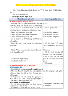 Hoạt động của giáo viên Hoạt động của học sinh
