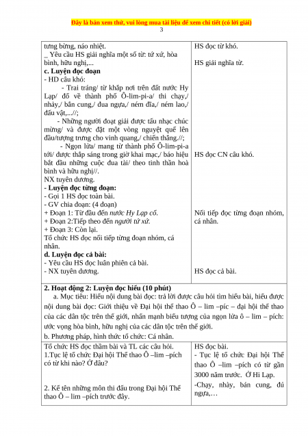 nội dung bài đọc: Giới thiệu về Đại hội thể thao Ô – lim –píc – đại hội thể thao