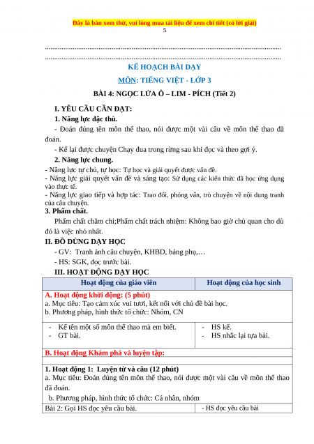 BÀI 4: NGỌC LỬA Ô – LIM - PÍCH (Tiết 1)