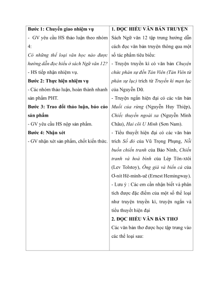 - GV yêu cầu HS thảo luận theo nhóm Sách Ngữ văn 12 tập trung hướng dẫn 4: