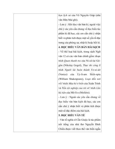 - HS hiểu được những nội dung chính của sách Ngữ văn 12.