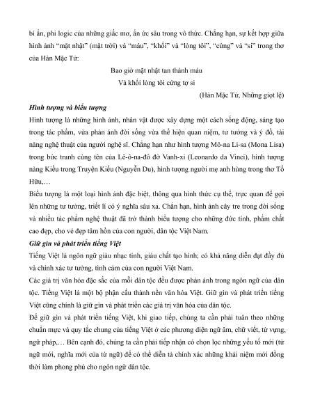 hình tượng, biểu tượng, yếu tố tượng trưng, siêu thực trong thơ,…