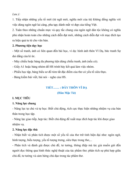 TIẾT…… : ĐÂY THÔN VĨ DẠ (Hàn Mặc Tử) I. MỤC TIÊU 1. Năng lực chung