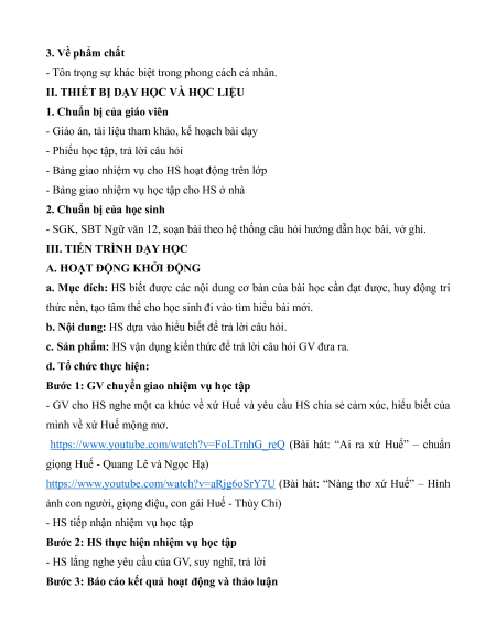 - Tôn trọng sự khác biệt trong phong cách cá nhân. II. CHUẨN BỊ 1. Tri thức ngữ văn