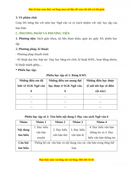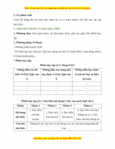 Phiếu học tập số 2: Tìm hiểu nội dung I. Đọc của sách Ngữ văn 6