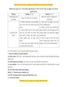 Phiếu học tập số 3: Tìm hiểu nội dung II. Viết và III. Nói và nghe của Sách