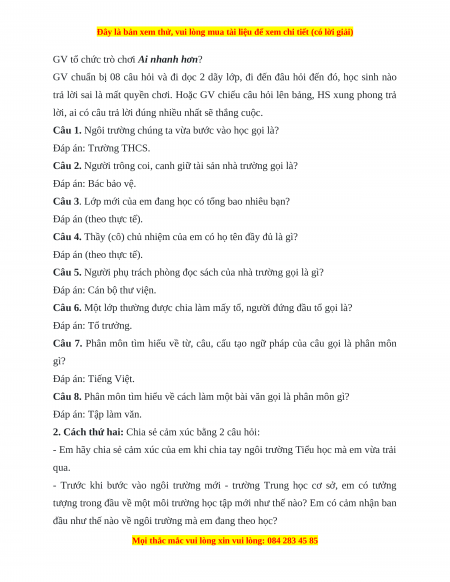Câu 1. Ngôi trường chúng ta vừa bước vào học gọi là? Đáp án: Trường THCS.
