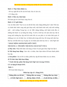 Phiếu học tập số 1: Bảng KWL Những điều em đã