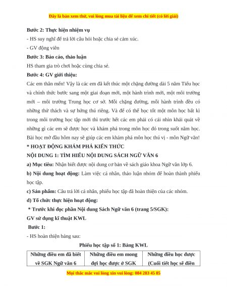 * Trước khi đọc phần Nội dung Sách Ngữ văn 6 (trang 5/SGK):