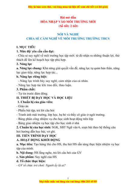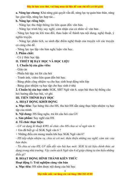 - Nhận biết được được ni dung cơ bản của SGK Ngữ văn 6.