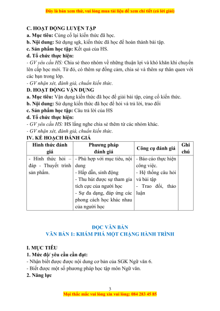 VĂN BẢN 1: KHÁM PHÁ MỘT CHẶNG HÀNH TRÌNH I. MỤC TIÊU