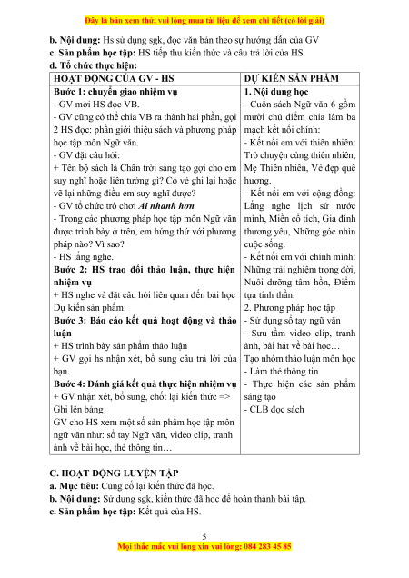 b. Nội dung: Hs sử dng sgk, đọc văn bản theo s hướng dẫn của GV