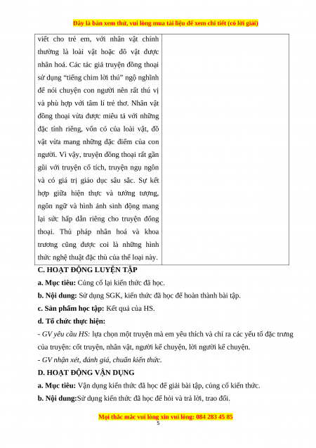- Nhận biết được một số yếu tố của truyện đồng thoại (cốt truyện, nhân vật, lời người