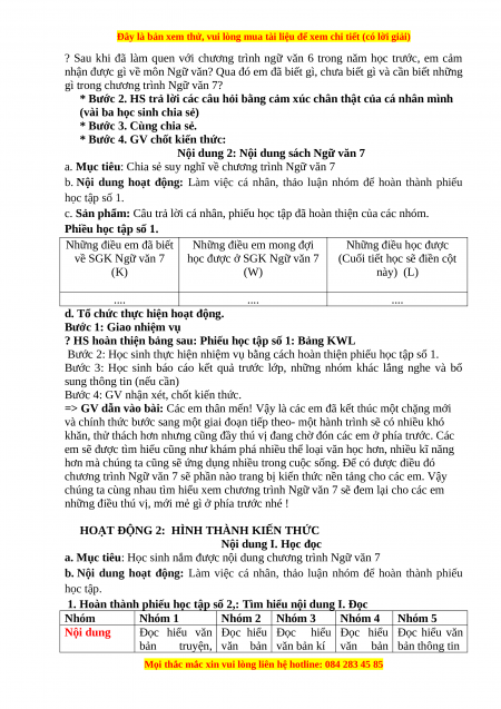 Nội dung 2: Nội dung sách Ngữ văn 7