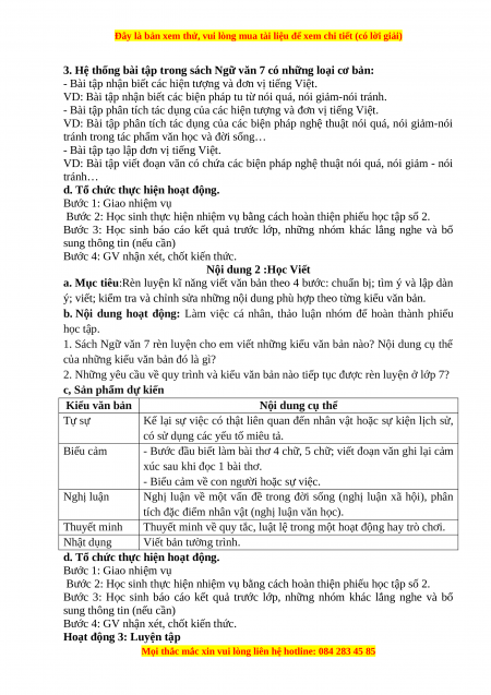 1. Sách Ngữ văn 7 rèn luyện cho em viết những kiểu văn bản nào? Nội dung cụ thể