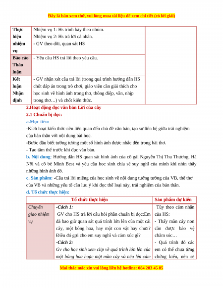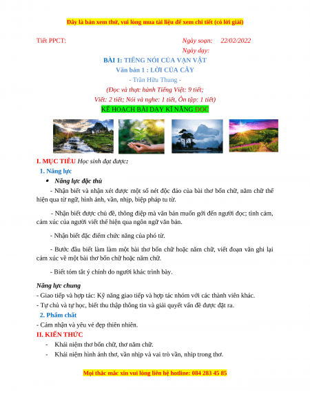 Văn bản 1 : LỜI CỦA CÂY - Trần Hữu Thung -