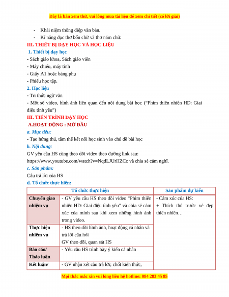 - Một số video, hình ảnh liên quan đến nội dung bài học (“Phim thiên nhiên HD: Giai điệu tình yêu”)