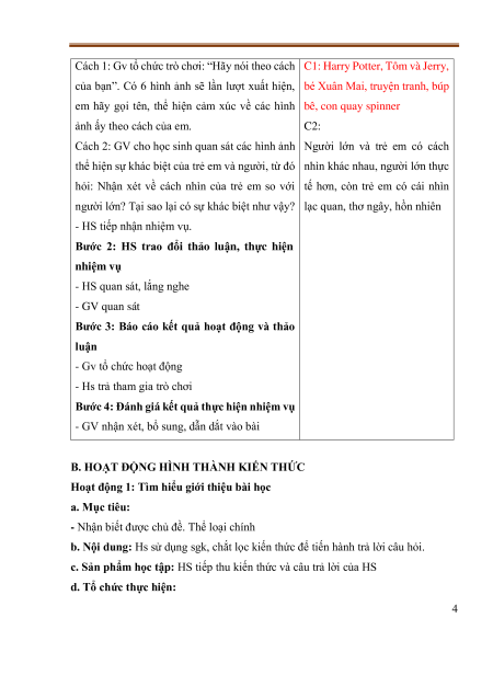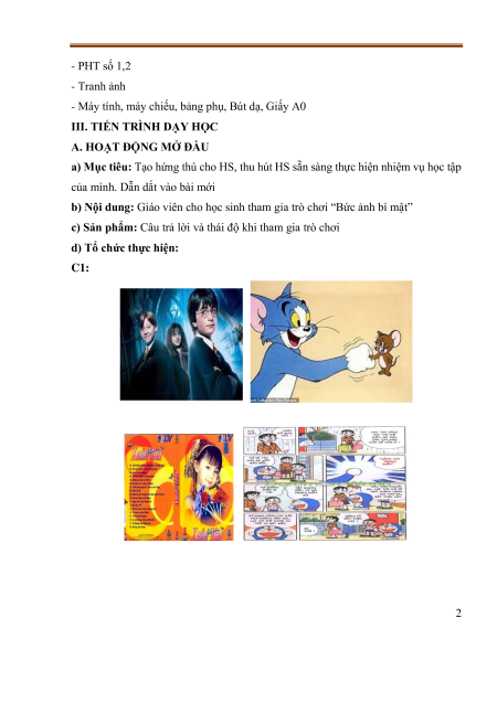 Cách 1: Gv tổ chức trò chơi: “Hãy nói theo cách C1: Harry Potter, Tôm và Jerry,