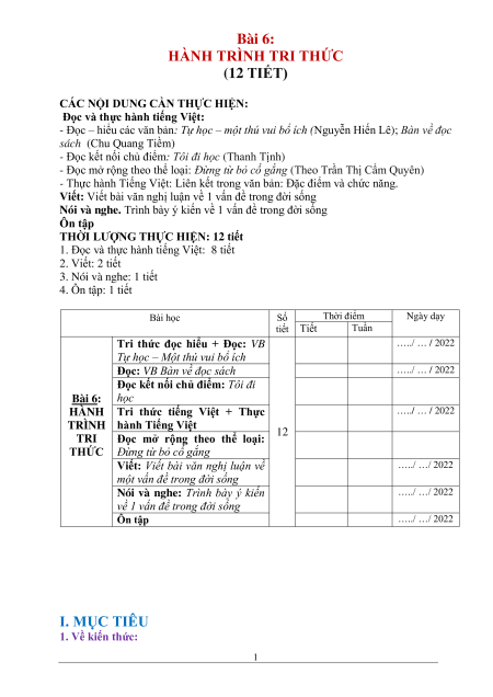 HÀNH TRÌNH TRI THỨC (12 TIẾT)
